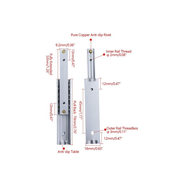 * Telescopic rails with a length of 70mm to 300mm, compatible with most drawers.