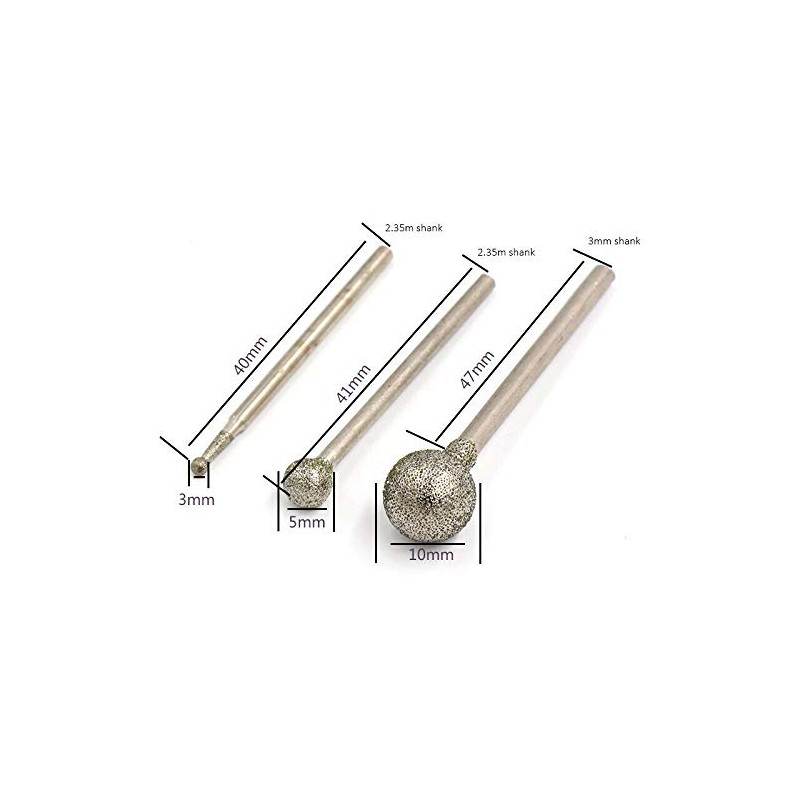 POWERTOOL Rotary Burrs, Diamond Coated Round Ball Burr Rotary Tools for Hanging Mill, Engraving Machines, Glass, Tile, Carving, Material Removal (5Pcs-3 x 10mm)