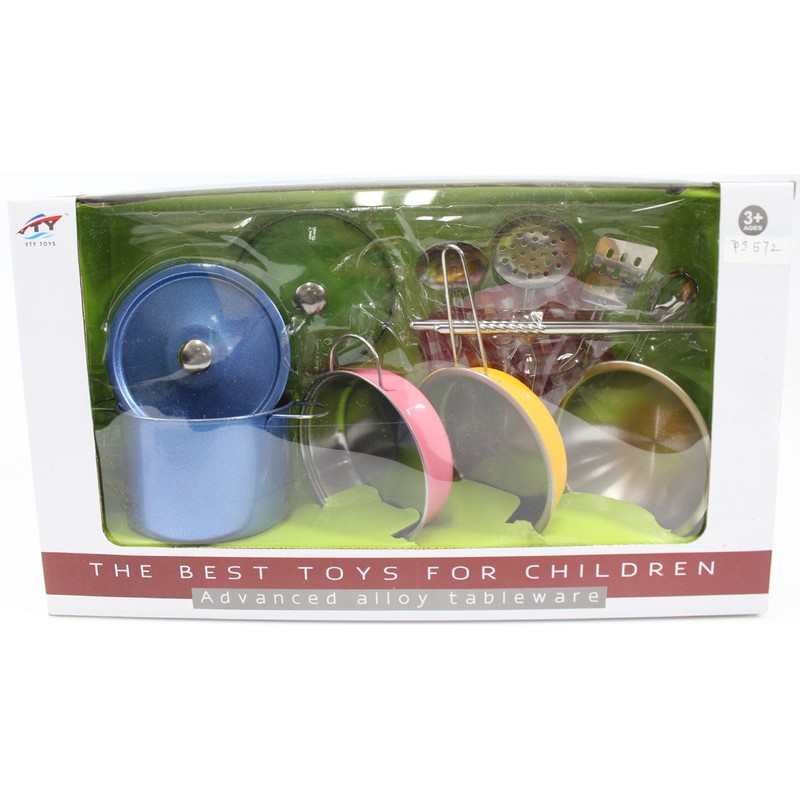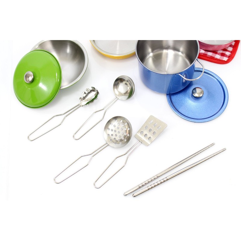 PowerTRC Colorful Metal Pots and Pans Cookware with Utensils Playset for Kids