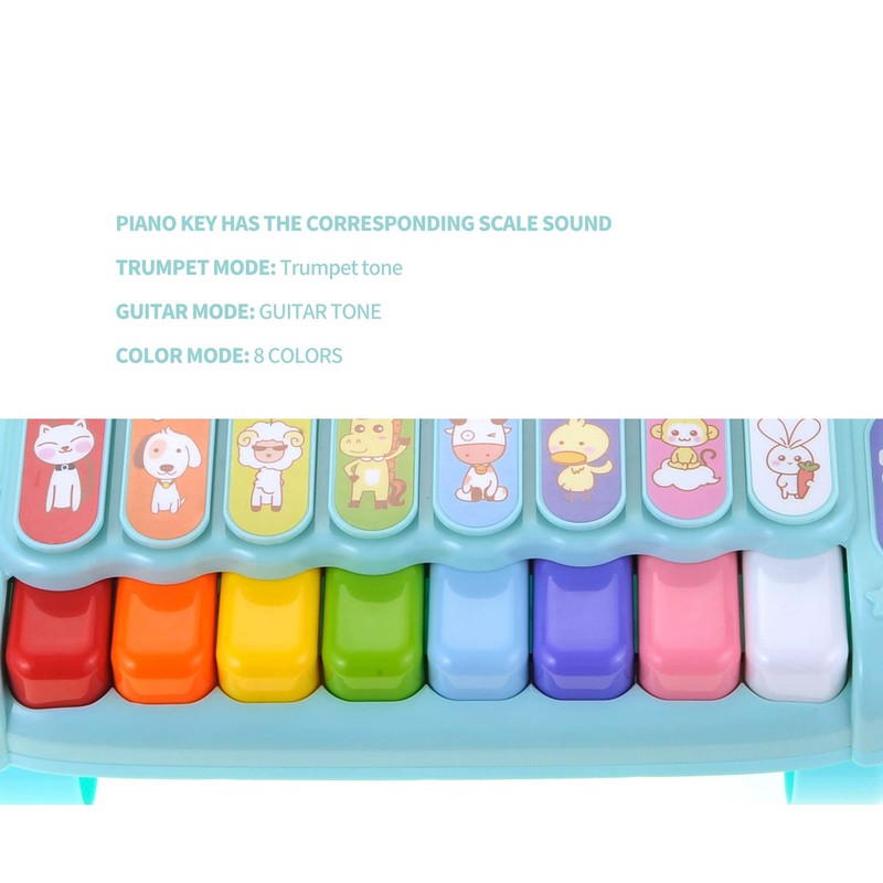 - PIANO MODES - Piano Mode, contains the regular piano tone. Solmization Mode, keys has a corresponding scale sound. Trumpet Mode, keys play a trumpet tone. Guitar Mode, keys play a guitar tone. Color Mode, keys play 8 color pronunciations