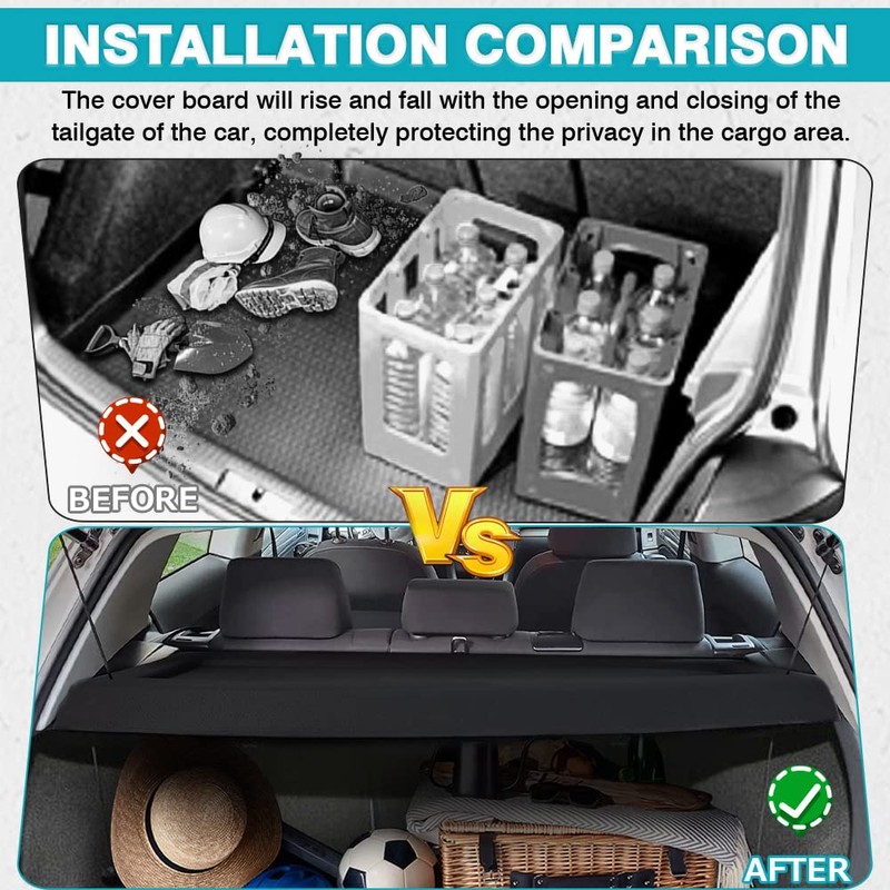 - Functions: The rear security cover can protect the items in the trunk from UV radiation; keep the private belongings away from prying eyes; improve the space utilization.