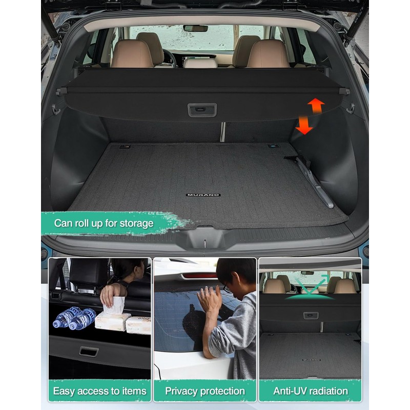 - 【Perfect Fit】This cargo cover is specially designed for Nissan Murano 2025. Our trunk cover is designed according to the original vehicle radian, the rear cargo cover perfectly fits the car trunk space.