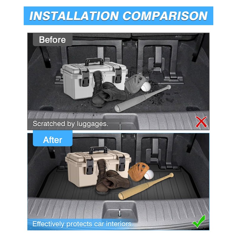 - 【Easy to Clean & Maintain】Cleaning is a breeze with our cargo mats. Simply remove it from your car, hose it down, or vacuum it to remove dirt and debris, making it a hassle-free addition to your vehicle.