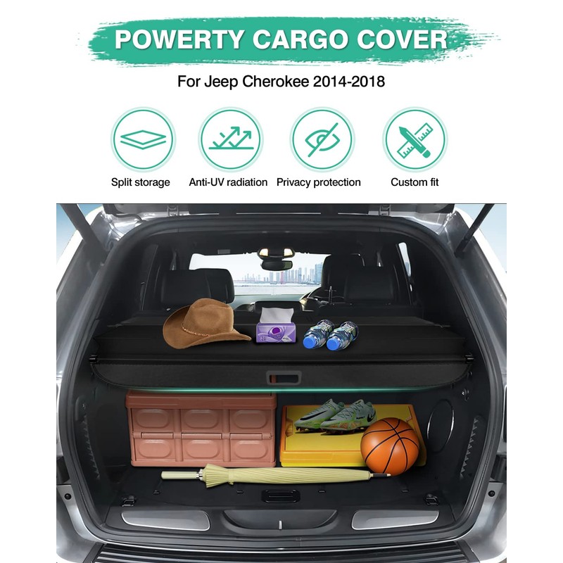 Powerty Cargo Cover for 2014-2017 2018 Jeep Cherokee Accessories Trunk Cover Retractable Trunk Shielding Shade Cargo Luggage Cover No Gap (Not for Grand Cherokee or Latitude)