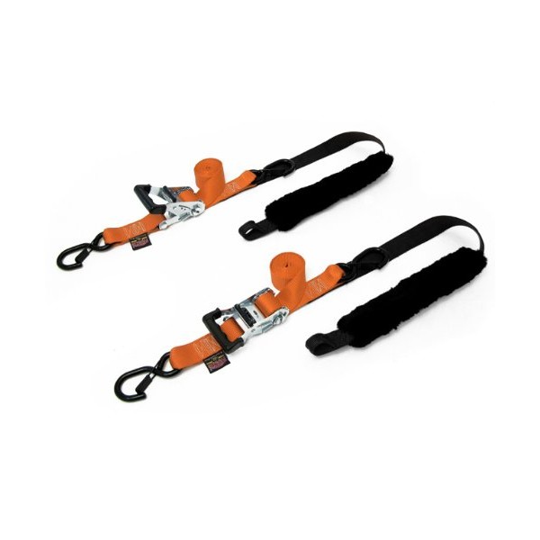 • Genuine Sheepskin Soft-Tye Sewn-In - Protects Paint and Chrome surfaces Extra-Wide Rubberized Ratchet Handle is easy to grasp, easy to operate. Heavy Duty Rubber-Coated Secure Latch Hooks - keeps your bike secure 1½" Wide Webbing 1,500 lb. working load Made in USA