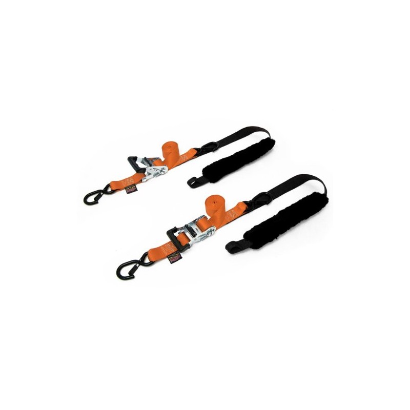 Powertye 1½" x 7ft Fat Strap Deluxe Ratchet Tie-Downs, Orange (Pair)