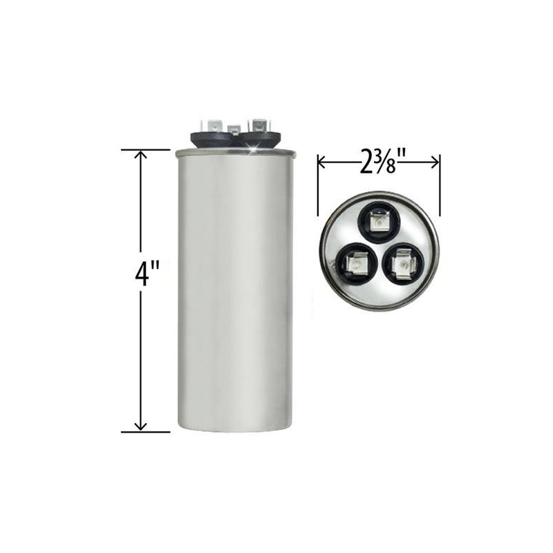 - 50/5 uf or 50/5 MFD micro farad 440 Volt Dual Run Round AC Capacitor . Replaces BOTH 370 & 440 VAC capacitors