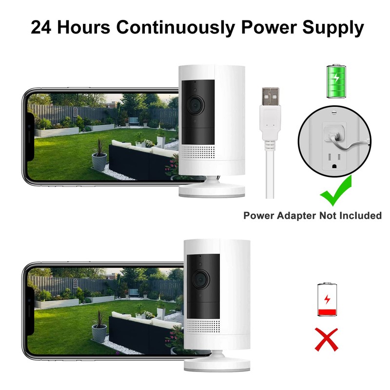 • Convenient. This power cable is specially designed for your Spotlight Cam Battery and Stick Up Cam Battery, makes it easier to charge your camera continuously. You no need to change the batteries.