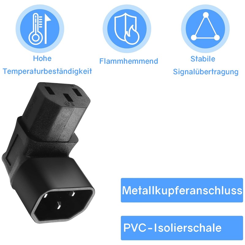 - 90 degree angle design: C14 to C13 angle plug, which is often used in tight spaces. Protects device ports from damage caused by frequent plugging and unplugging Extends life
