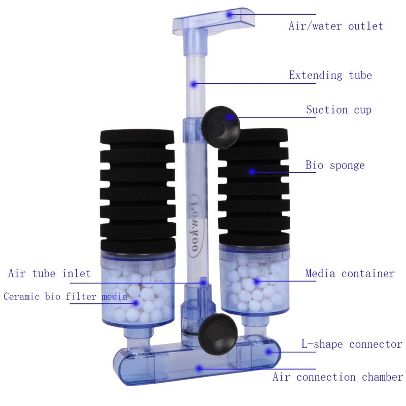 - Double 7-layer ribbing shape sponges design, it quickly established a bio-filter and extra oxygen, two sponges means more surface area for beneficial bacterial to colonize and faster cycling, keep your fish tank crystal clear and clean