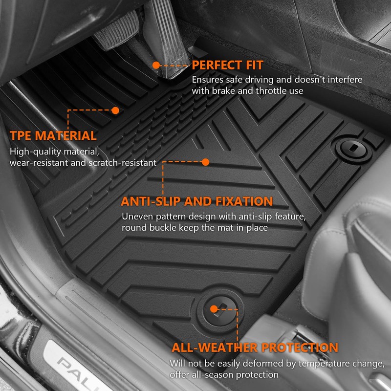 - Simple Installation: Our mats are very easy to install. The back of our backrest mat has Velcro so that you can stick and fix easily.You do not need additional tools to assist in installation,just put the trunk liner and floor mats in the right place.Note that the floor mats are only compatible with 6-seat model.