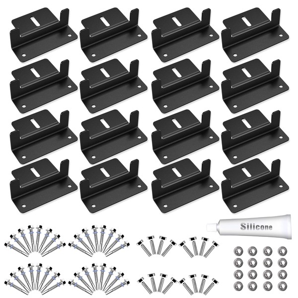 POWOXI Solar Panel Mounting Bracket Aluminum Solar Panel Z Brackets Roof Solar Panel Bracket for RV, Boat, Wall, Caravans, Yacht and Other Off Gird Installation, Set of 16 Units, Black