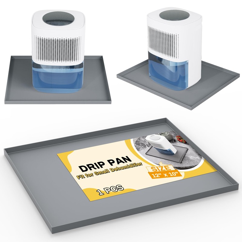 Powrocket Dehumidifier Drip Pan for Leaks, 12'' x 10'' Dehumidifier Mat with Raised Edge, Non-Slip Waterproof Drip Pan for Dehumidifiers, Prevent Water Leakage and Floor Damage, Gray