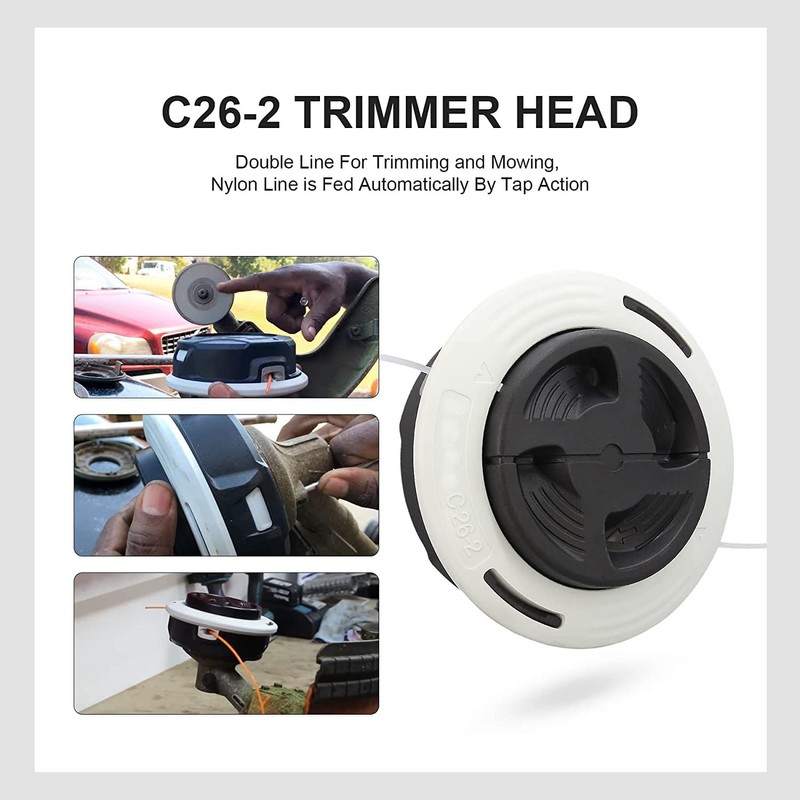 - 【Use for】: C26-2 Double Line Trimmer Head For Mowing and Thinning, Can Use With .095-inch Line. The Nylon Line is Automatically Adjusted By Tapping The Cutting Head Against The Ground. Suitable For Lawn Trimming, Around Trees, Between Shrubs Along Edges, Walls and Fences