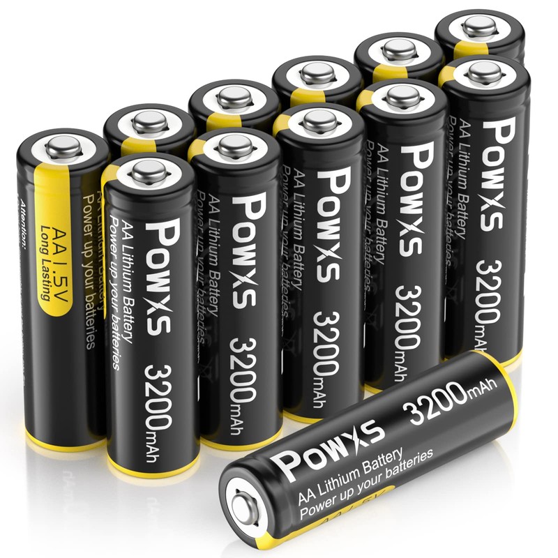 POWXS AA Lithium Batteries, 12 Pack 1.5V Lithium Iron AA Batteries 3200mAh Super Capacity for Blink Camera, Video Doorbell, Flashlight, Toys, Remote Control 【Non-Rechargeable】