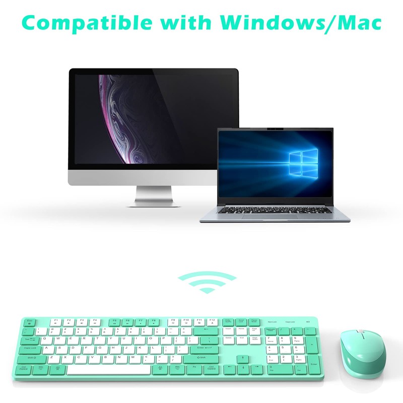 • 【Windows and Mac Keyboard Layout 】 -- Enjoy the familiar typing whether you're apple fans or a PC user. Available for both PCs and Macs (complete with the right Command and Option keys position), you can use Windows or Mac keyboard layouts depending on your devices system with this keyboard and mouse. (The keyboard works with 2 AAA battery, the mouse uses 2 AAA battery, batteries are not included)