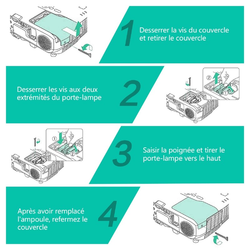 - 【Easy Installation】: When you install the projector, wait for the old lamp to cool down before replacing it, easy to install.