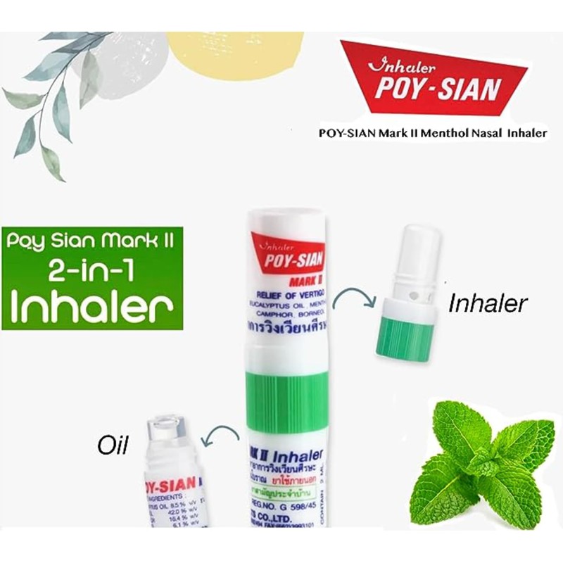 POY-SIAN Mark II Menthol Aromatherapy Nasal Inhaler, Natural Herbal Remedy wi...
