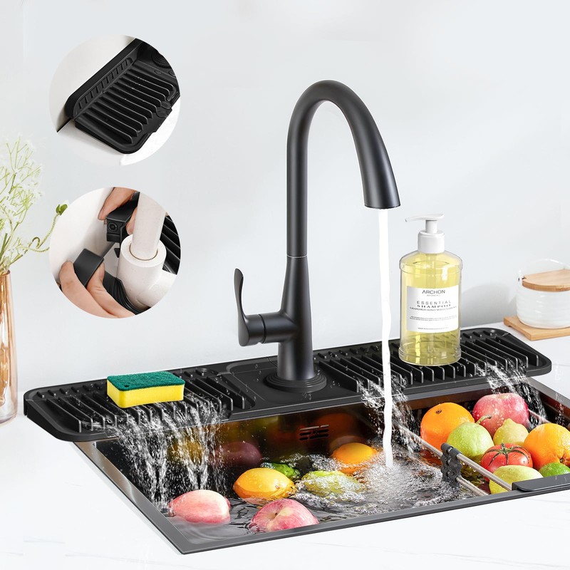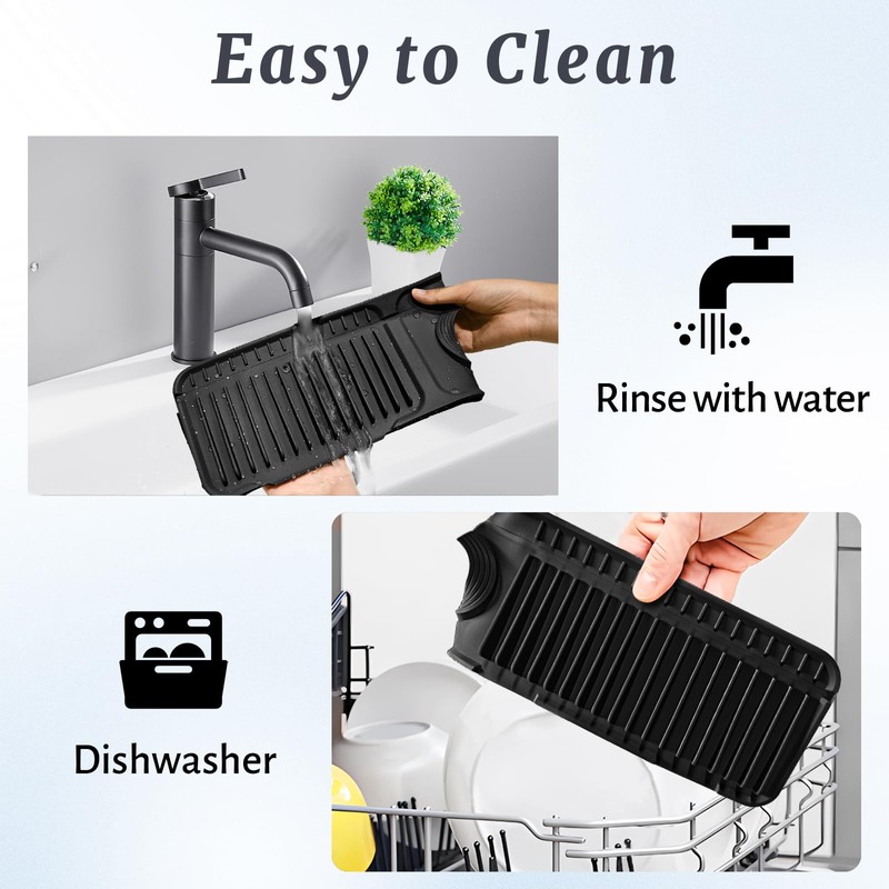 - Efficient Sink Protector: PoYang silicone sink splash guard keeps kitchen faucet base dry and clean. The kitchen sink faucet mat prevents water stains from splashing or leaking faucets. Our splatter screens suitable for kitchen, bathroom, RV and farmhouse