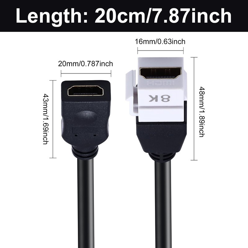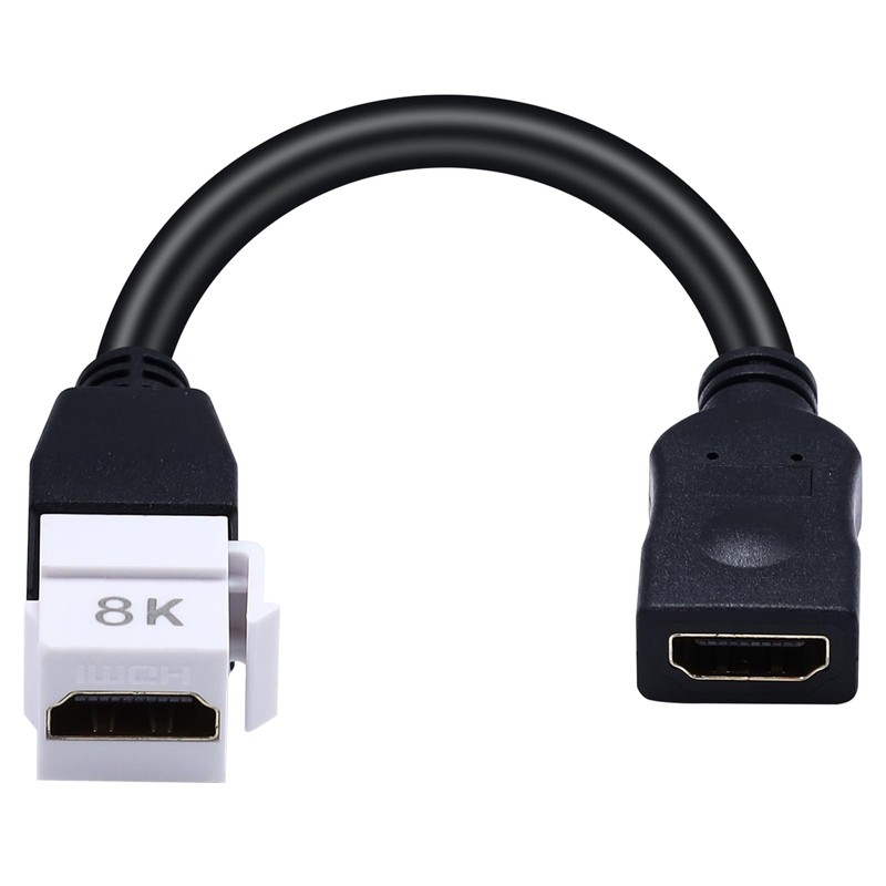 Poyiccot 8K HDMI Keystone Jack Pigtail Cable, 48Gbps HDMI 2.1 Keystone Pigtail Cable Female to Female Video Extension Snap-in Connector for White Wall Plate 8K, 4K@60Hz, 8inch