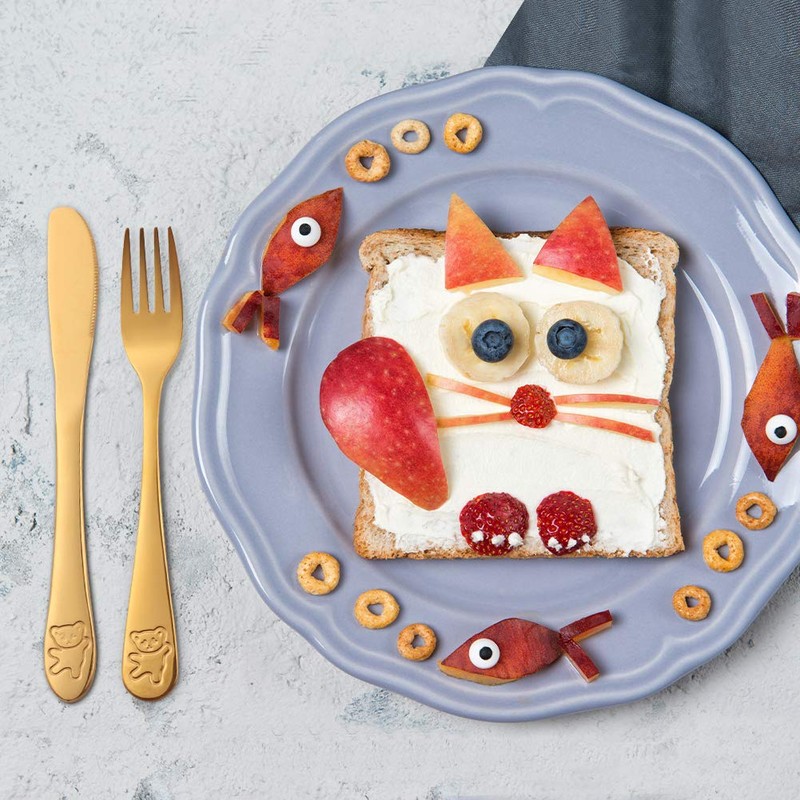 Limpia y seca el juego de cubiertos para niños con un paño suave después de usar y luego guárdelo en un lugar seco para su durabilidad y belleza.