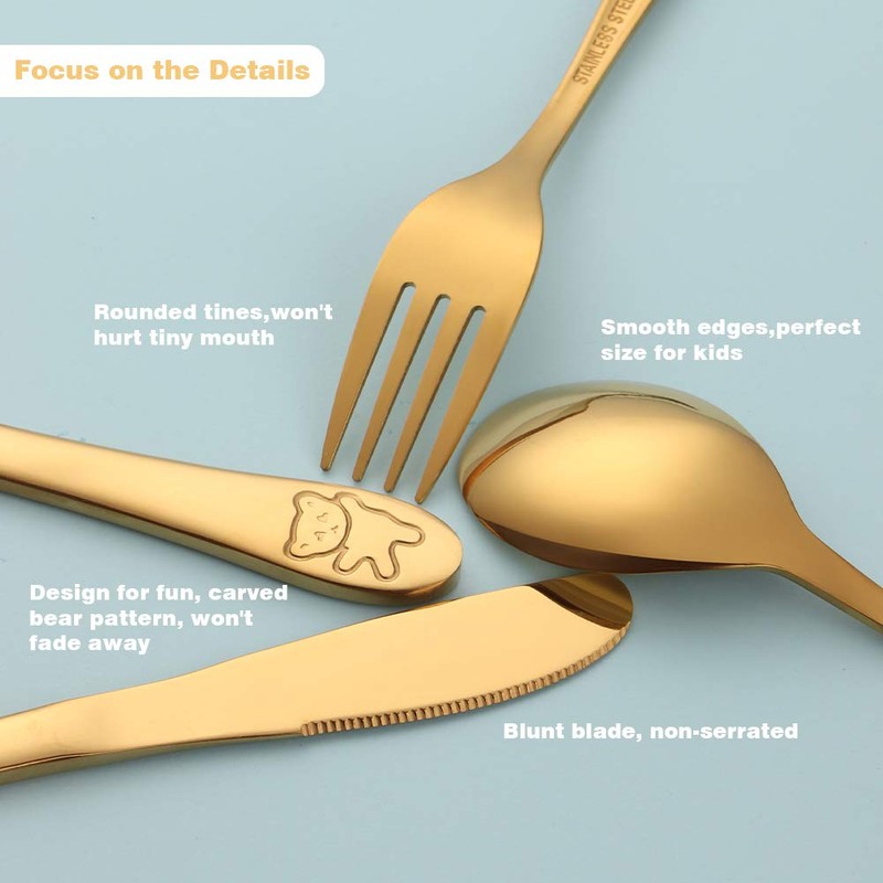 • Tamaño diseñado para niños: tenedor: 6.4 x 0.8 pulgadas, cuchara: 6.3 x 1.3 pulgadas, cuchillo: 7 x 0.7 pulgadas. El tamaño es más grande que los utensilios para niños, mientras que más pequeño que los cubiertos de tamaño completo, se adapta perfectamente a las manos pequeñas de los niños. Es un gran paso para que los niños en crecimiento utilicen cubiertos Poylim para niños en lugar de utensilios de plástico y es la cubertería ideal para niños en transición entre utensilios de bebé y cubiertos pesados para adultos.