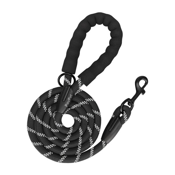 PoyPet Dog Leash 5 Feet for Small Medium and Large Dogs Reflective Heavy Duty Padded Rubber Handle 360° No Tangles(Black)