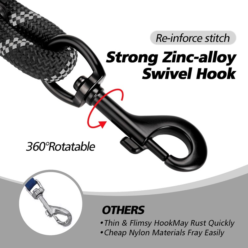 • 360°ROTATION CLASP: There's nothing more annoying than a twisted leash. This sturdy metal swivel clasp prevents the leash from getting kinked or tangled. Sturdy zinc alloy clasp ensures long-lasting training his leash. Premium components for maximum strength!