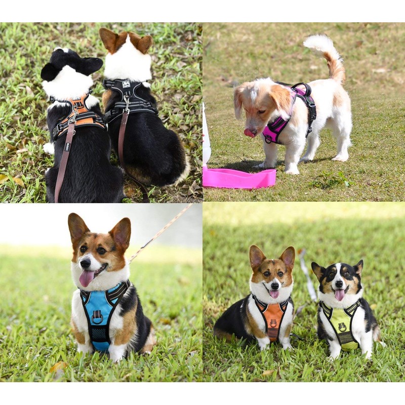 - NO PULL AND CHOKE FREE: Our front lead dog harness has two sturdy metal leash attachment points with reinforced webbing, front clip for discouraging pulling and back for relaxed walks. The pet harness is soft breathable non-toxic mesh padded, pulling pressure is evenly distributed to the body to prevent Choking. This easy dog harness is perfect for daily walking, running, hiking, training, hunting, outdoor adventure and more!