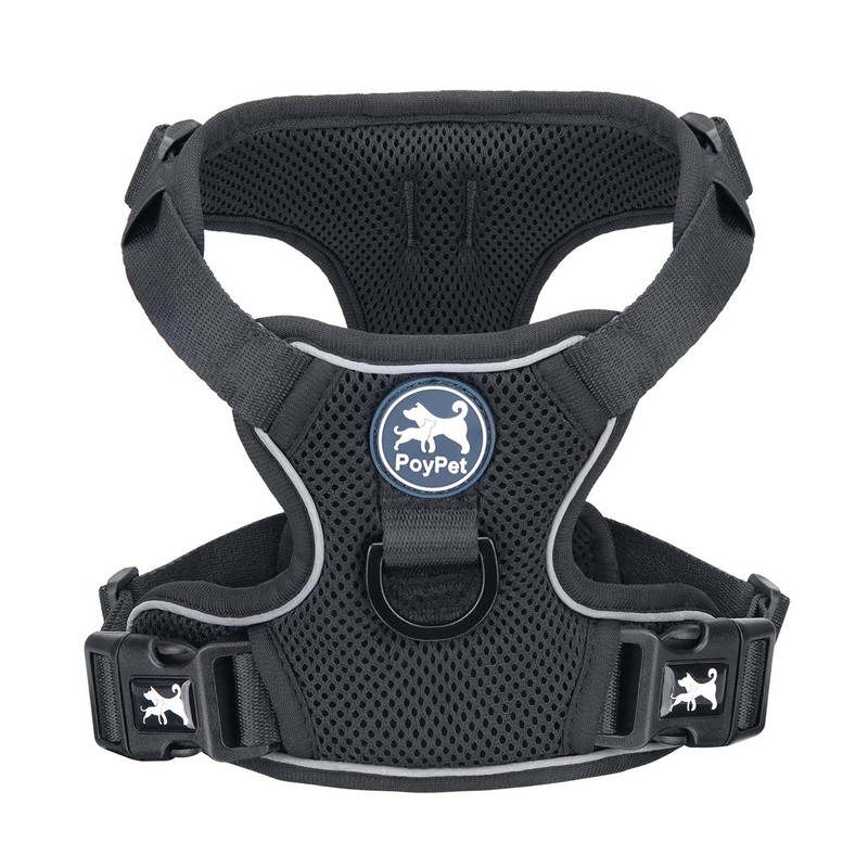 PoyPet Reflective Soft Breathable Mesh Dog Harness Choke-Free Double Padded Vest with Adjustable Neck and Chest