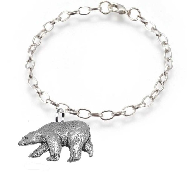 pp-a08 Polar Bear fine lead free English Pewter on a belcher link chain anklet bracelet