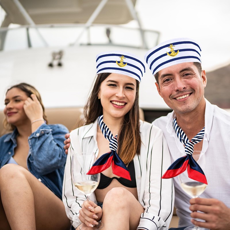 2. Sailor hat embroidered with classic nautical motifs can show your love for the sea and put you in the nautical party, and the hat and scarf can also effectively protect you from the hot sun.