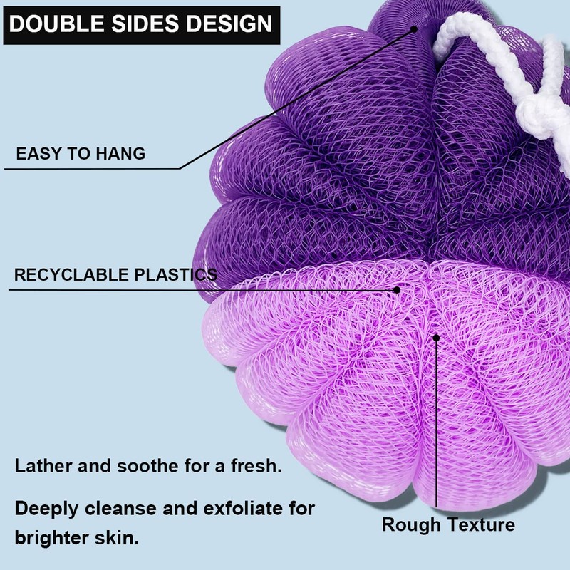 - 【100% polietileno reciclado】Nuestro limpiador exfoliante para ducha está diseñado con una red súper suave 100% reciclada. Se puede utilizar de forma segura. Diseño de bucle que puedes agarrar los extremos y limpiar tu espalda sin esfuerzo