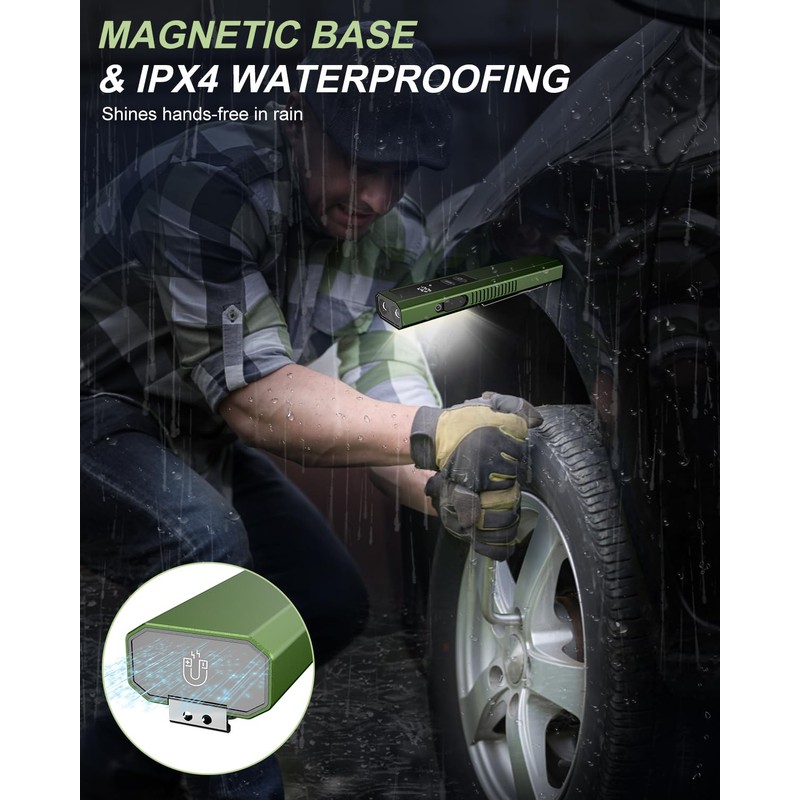 • Aluminum Alloy Design: Made of high-strength aluminum alloy for durability. Features a strong magnetic base for hands-free use, a durable pocket clip for easy carrying, IPX4 suitable for most environments. Includes a storage case for protection and portability.