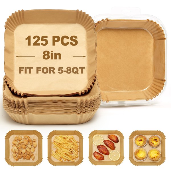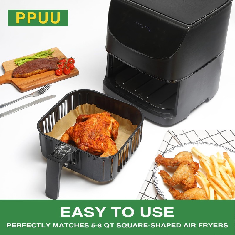 PPUU Air Fryer Liners Disposable, 8 inch Air Fryer Parchment Paper Compatible with COSORI/InstantPot 5-8 QT Air Fryer Oil-Resistant, Resistant to 428°F, Clean in One Second, Reinforced, 125pcs