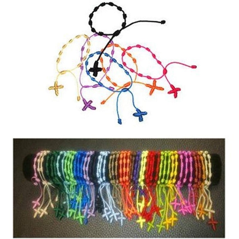 PPX 10pcs Handmade Rosary Cross Bracelets 10 Colors, Nylon