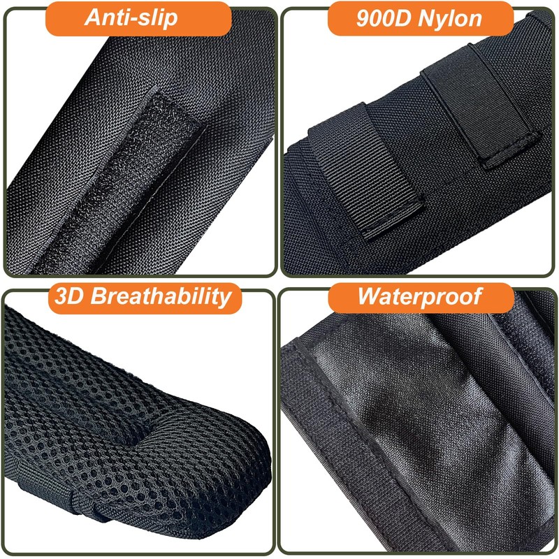 - Lightweight and Breathable: The shoulder pad was made from 900D nylon with a PU coating, which is for waterproof. With breathable mesh layer to help dissipate heat.