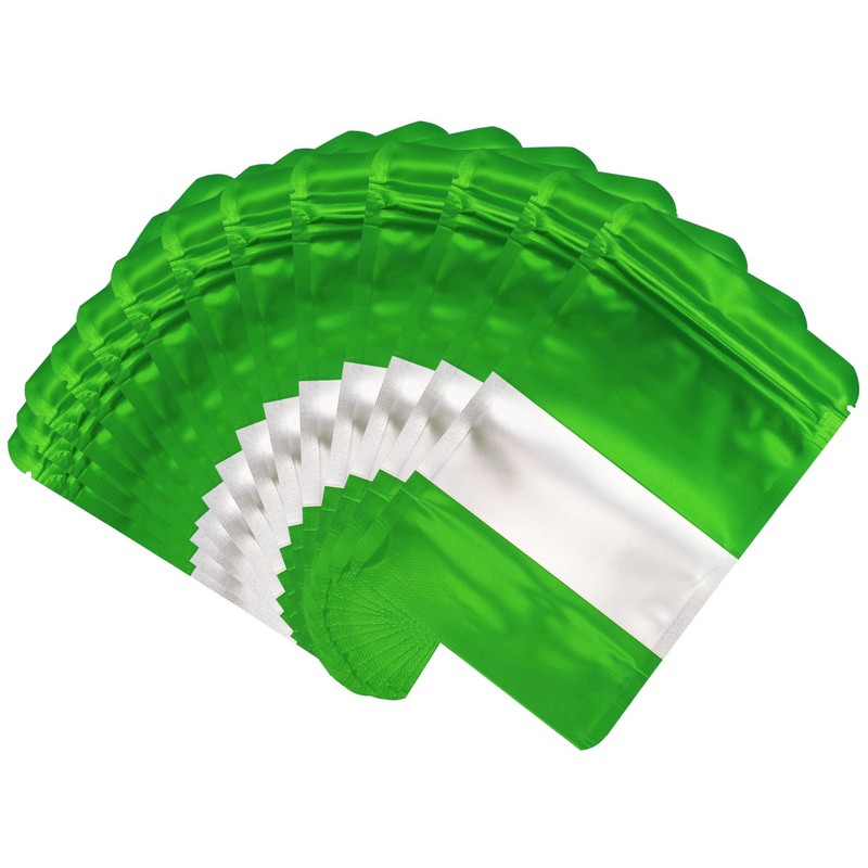 PQZKLDP 50 Pieces Smell Proof Green Bags-4.7X7.9 inch Resealable Matte Metallic Ziplock Bags, Stand Up Food Storage Bags with Window, Foil Pouch Sealable Bags for Small Business