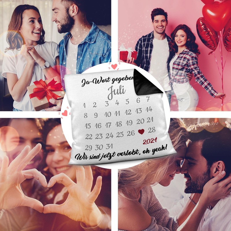 • High quality photo cushion personalised with a very special message and reminder thanks to the anniversary calendar. An original and beautiful gift idea for couples and lovers. Ideal for Valentine's Day, anniversary, but also for birthday or Christmas. A great and personal memory is this magically printed cushion.