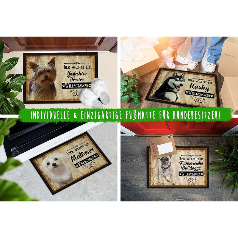 - Do you love your pets and would like to convey this to your visit to the apartment door? Original doormat for the entrance door with individual dog breed of your sweet darlings. The perfect own welcome mat for your guests. The perfect gift idea for dog lovers and dog owners. No matter what the occasion