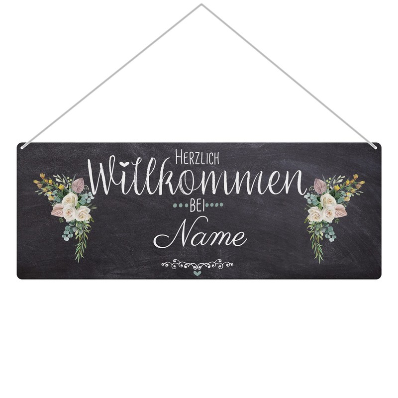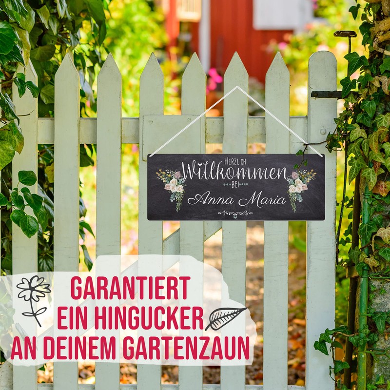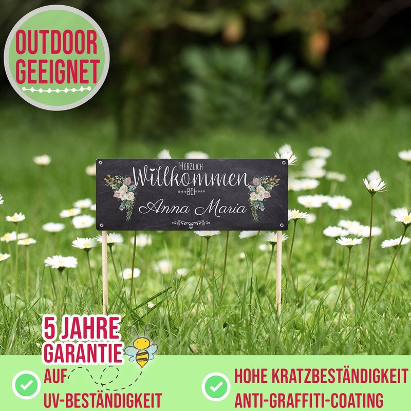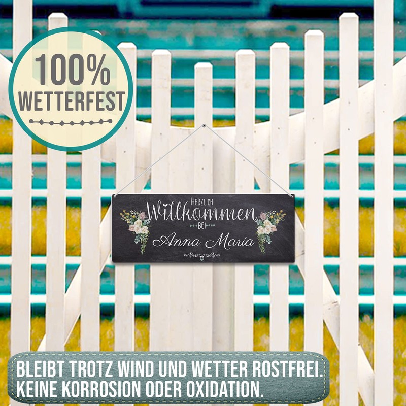 - Metal sign with your own name and beautiful motif – ideal for outdoor use – printed outdoor sign with your desired name – can be used as a door sign, garden sign, on the garden door or the front door