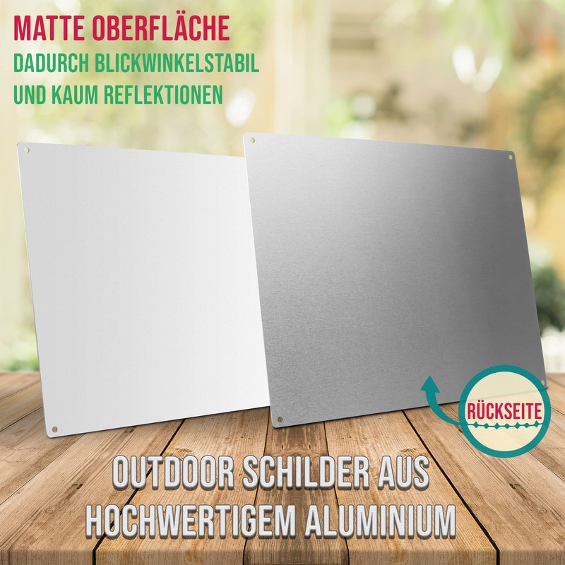 - Material: aluminium, thickness 1.15 mm, particularly stable and scratch-resistant, with anti-graffiti coating, dimensions: 24 x 9 cm in landscape format, includes 2 drill holes and a white cord approx. 1m long for hanging on doors and walls