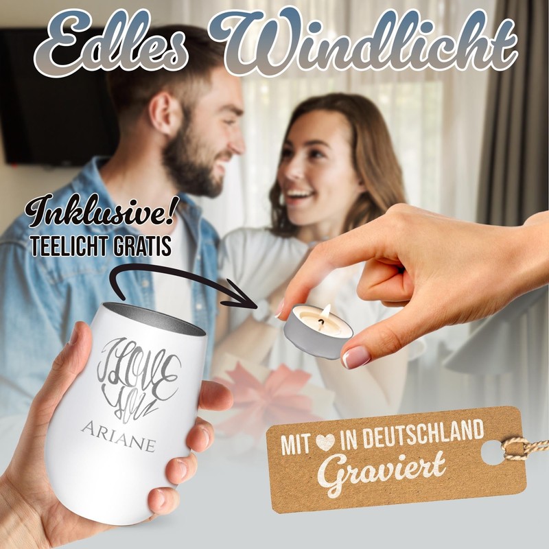 - GESCHENKE FÜR JEDEN ANLASS - Unser hochwertig graviertes Windlicht aus Glas inklusive Teelicht ist ein Liebeslicht für die Ewigkeit. Graviert mit Ihren Wunschnamen eignet sich der Kerzenhalter exzellent als Geburtstagsgeschenk oder als Geschenk zum Hochzeitstag, Jahrestag oder Valentinstag für Partnerin oder Partner.