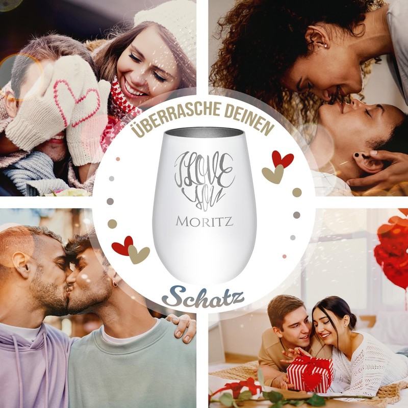 PR Print Royal Weißes Windlicht personalisiert mit Gravur - Herz I Love You - Liebe, Valentinstag, Hochzeitsgeschenk, Geschenke zum Jahrestag, Geburtstag, inkl. Teelicht, 450 ml, Innen Silber