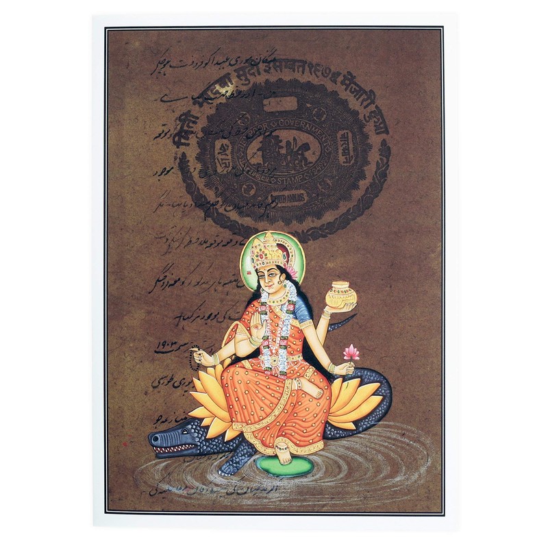 Prabhuji's Gifts Greeting Card - Ornate Miniature Painting Card with Envelope - Matte Paper Greeting Cards - Hand-Written Script - All Occasion Greeting Cards - (Ganga)