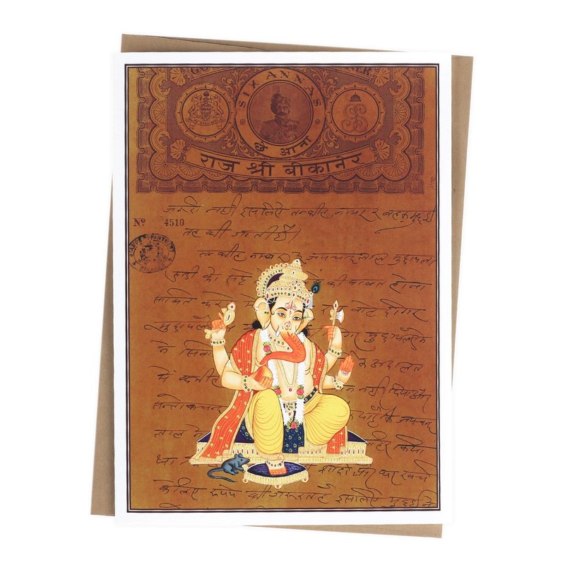 Prabhuji's Gifts Greeting Card - Ornate Miniature Painting Card with Envelope - Matte Paper Greeting Cards - Hand-Written Script - All Occasion Greeting Cards - (Seated Ganesh)