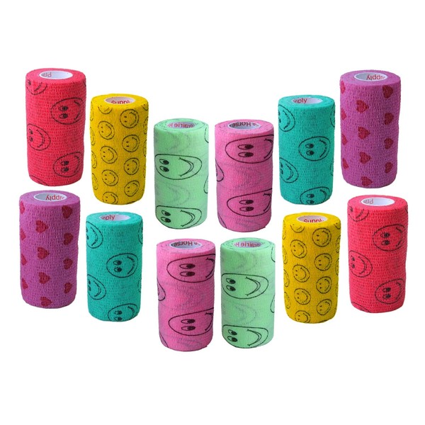 Prairie Horse Supply 3 Inch Vet Wrap Tape Bulk (Assorted Patterns) (Pack of 12) Self Adhesive Adherent Adhering Flex Bandage Grip Roll Dog Cat