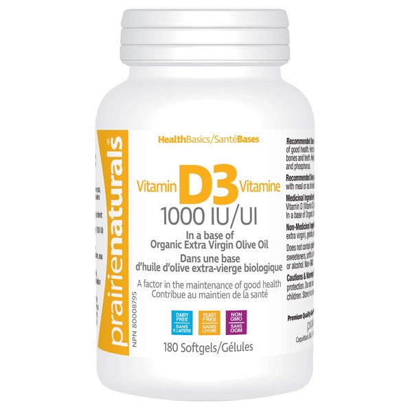 Prairie Naturals Vitamin d3 cholecalciferol 1,000iu softgel, 180 Count