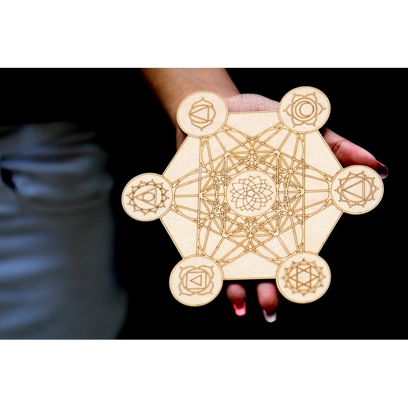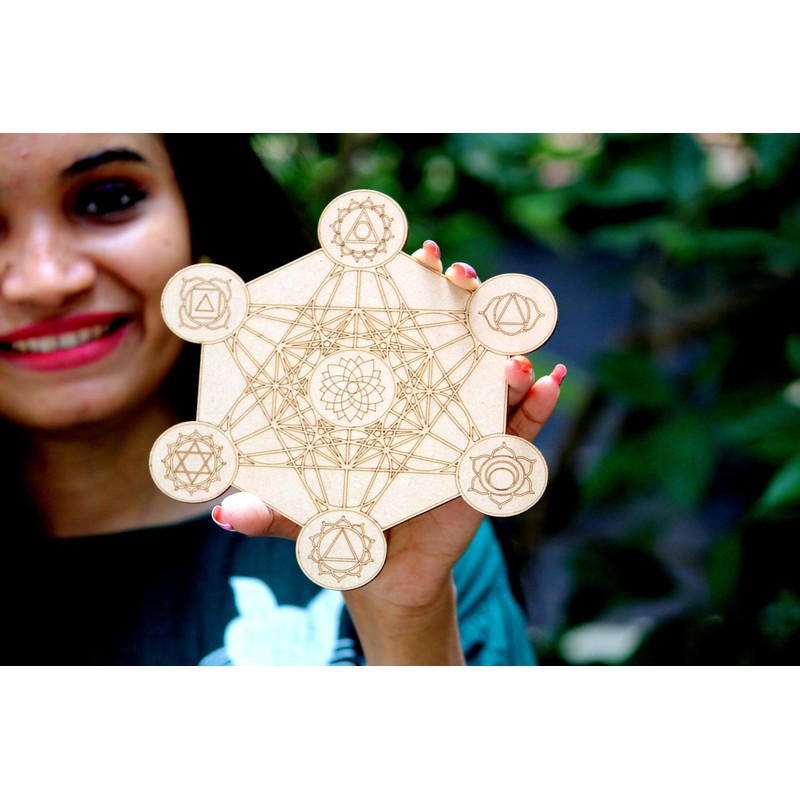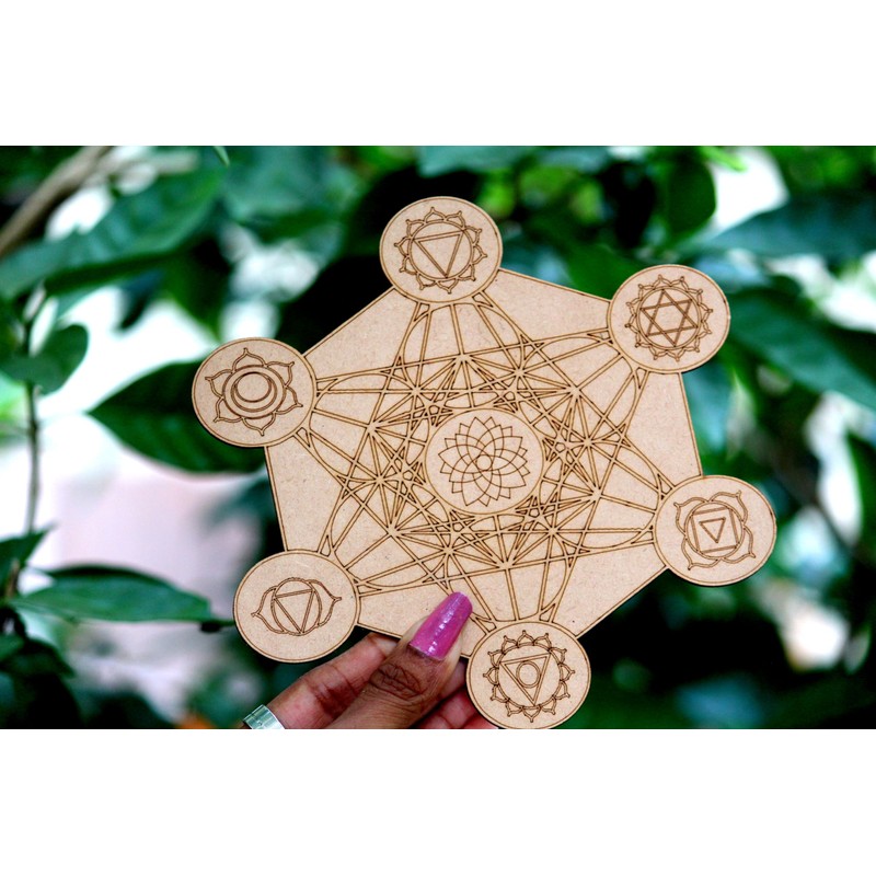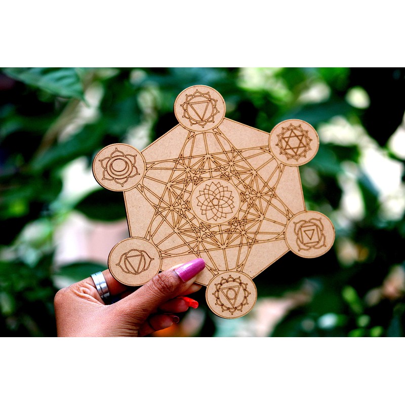 Prajet Wooden Carving crystal Grid - Amplify The Power of Your Crystals, Grids for Crystal, Witchcraft, Wiccan Altar, Space Decor Crystal Grid for Stones (Metatrone With Chakra Grid Wall)
