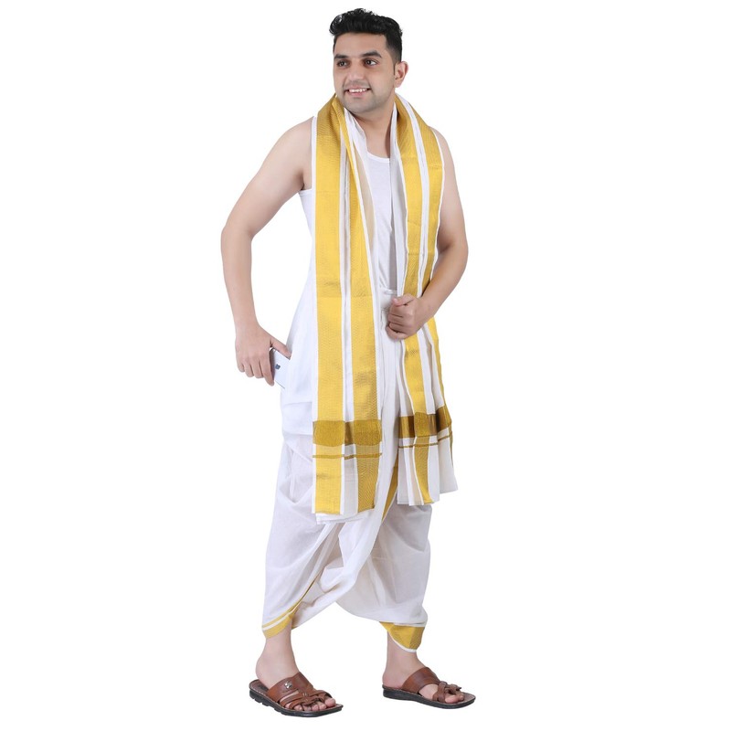 Prakasam Cotton Is the Leading Dhoti Sale Brand In Indian Online Market. Our Products are Very Trendy and easy to wear, Nowadays peoples like wear dhoties very easily. So we introduced for those guys Ready to wear dhoties. most of the youngster Like this Ready to wear dhoties. Not only youngsters all peoples like this readymade dhoties. In This Panchakacham Products are Purely Cotton fabric and Stitched with pocket for cell phone, wallets, etc.., Its a free size So easily wear All peoples Hip size 26 up to 46. You can wear like pant.